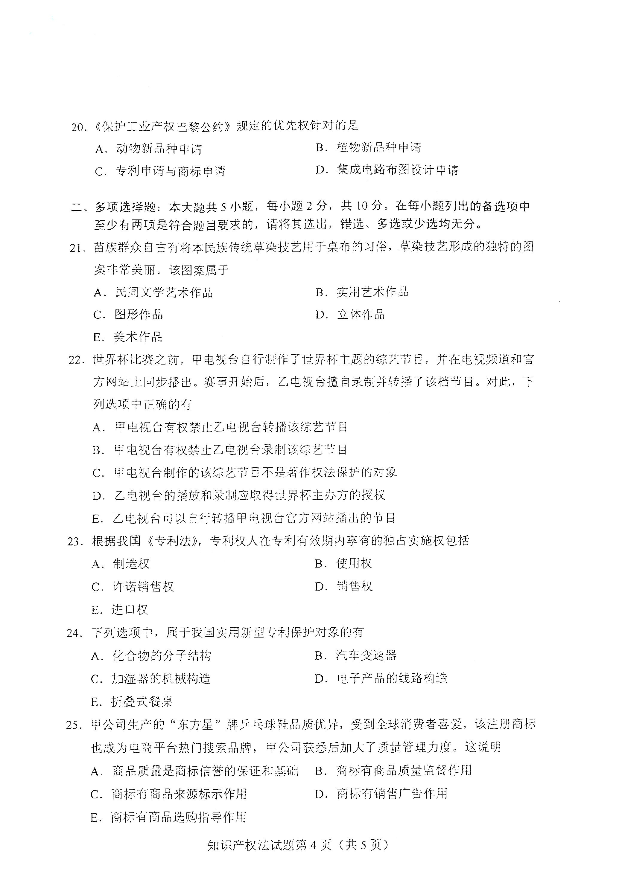 【前言】2021年4月湖南自考已經結束,湖南自考網小編整理了2021年4月2021年4月湖南自考知識產權法(00226)真題試卷,考生可根據自己的需求及時進行10月湖南自考的備考復習,試卷內容如下:
