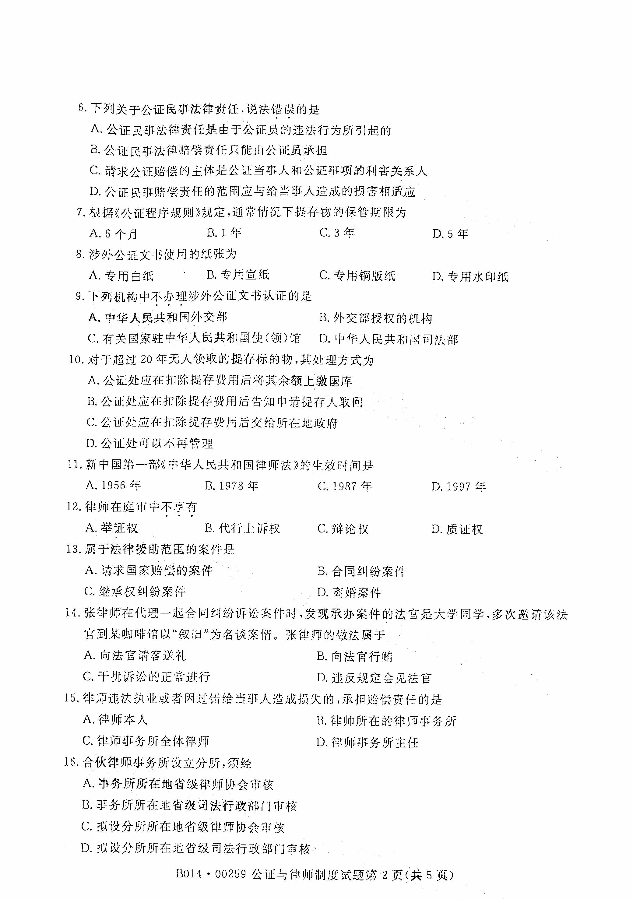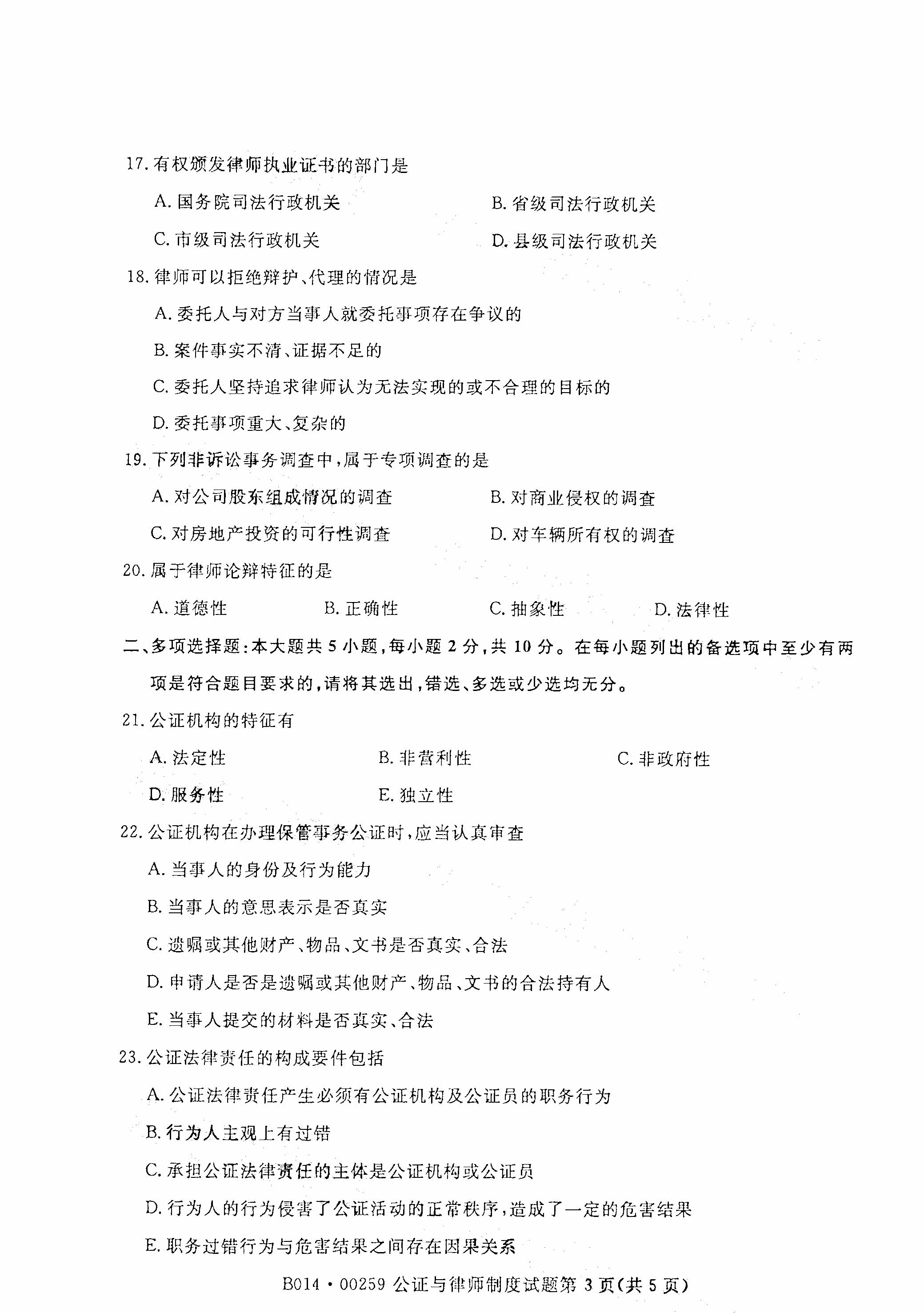湖南自考公證與律師制度真題試卷
