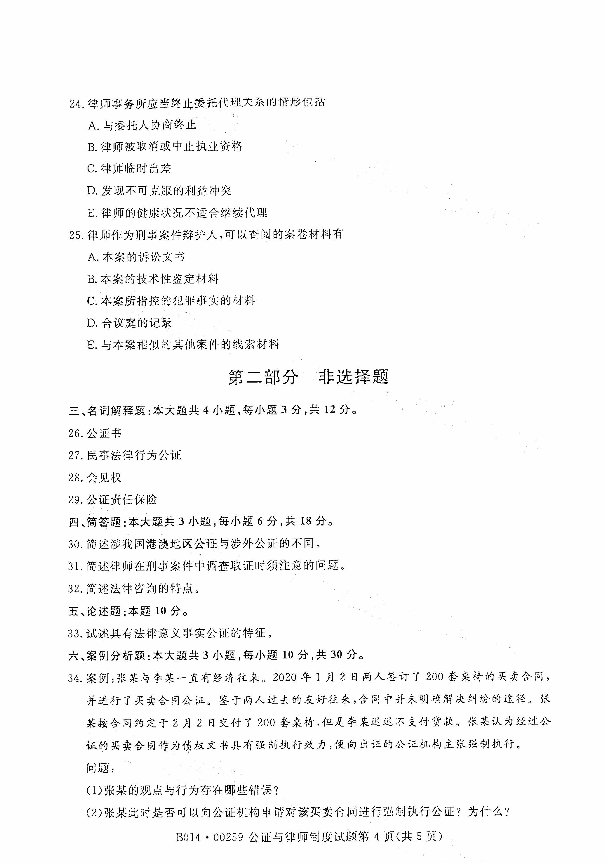 2021年4月湖南自考公證與律師制度(00259)真題試卷
