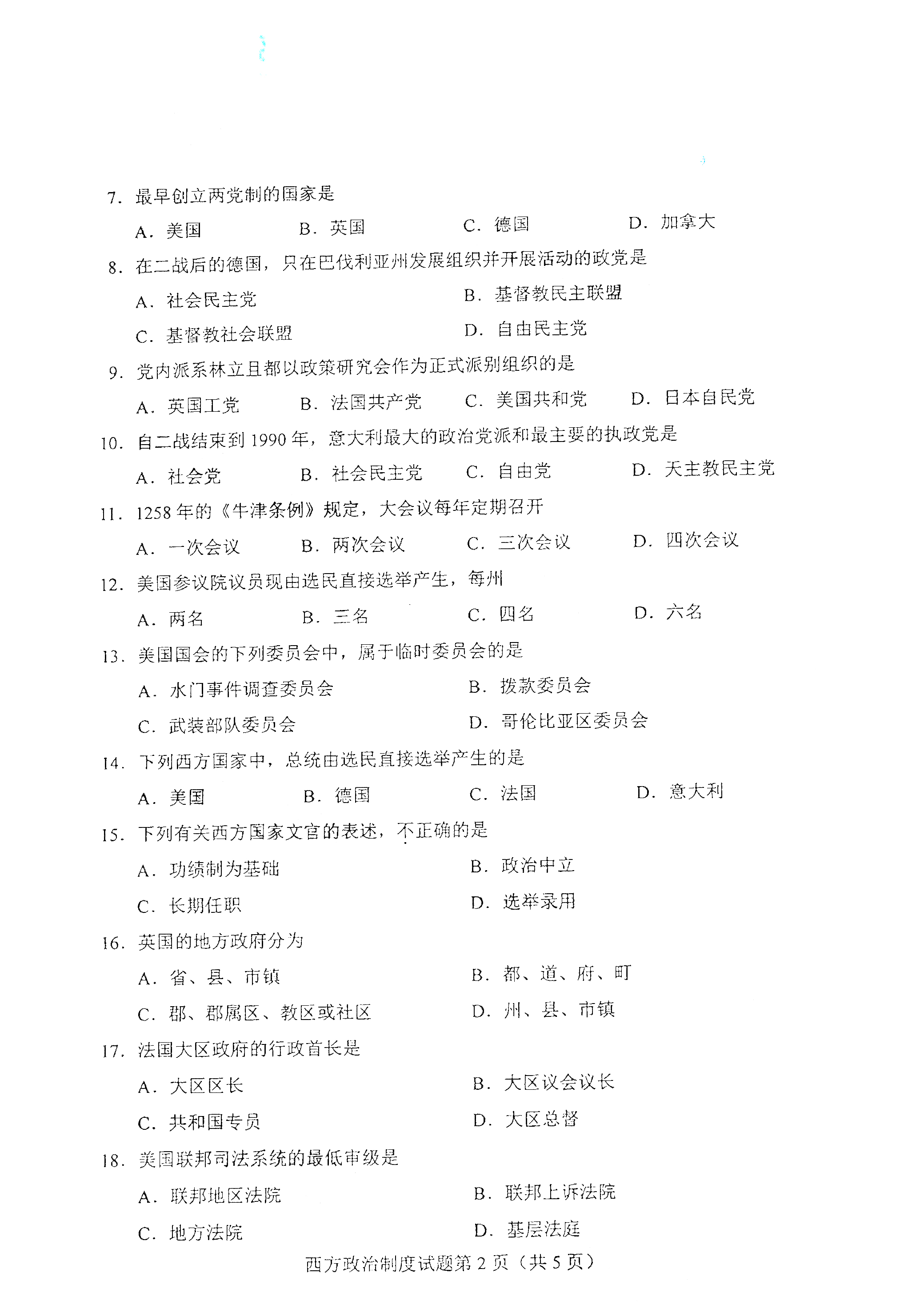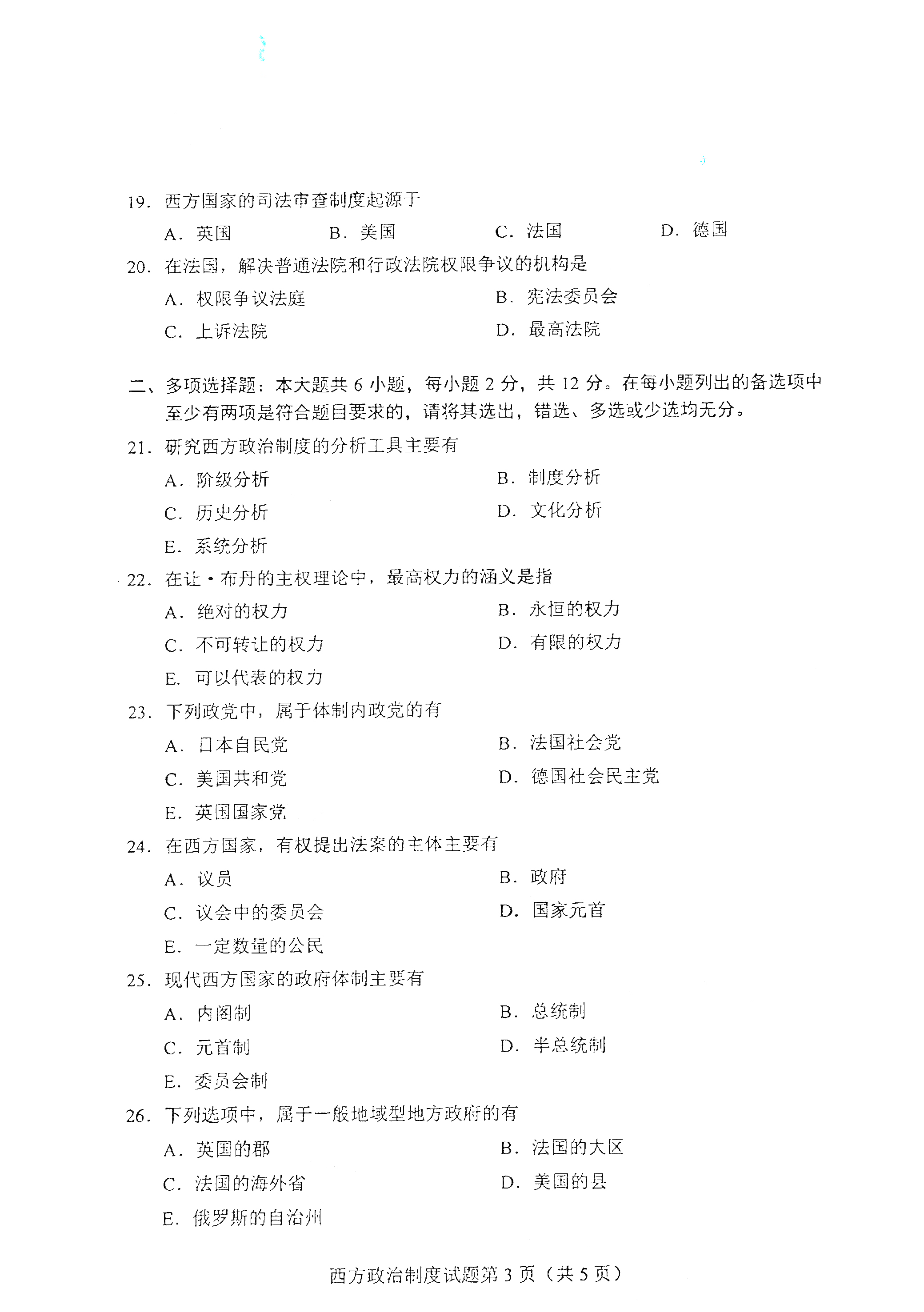 【導讀】2021年4月湖南自考已經結束,湖南自考小編整理了2021年4月湖南自考西方政治制度(00316)真題試卷,考生可根據自己的需求進行10月湖南自學考試的復習備考,試卷內容如下: