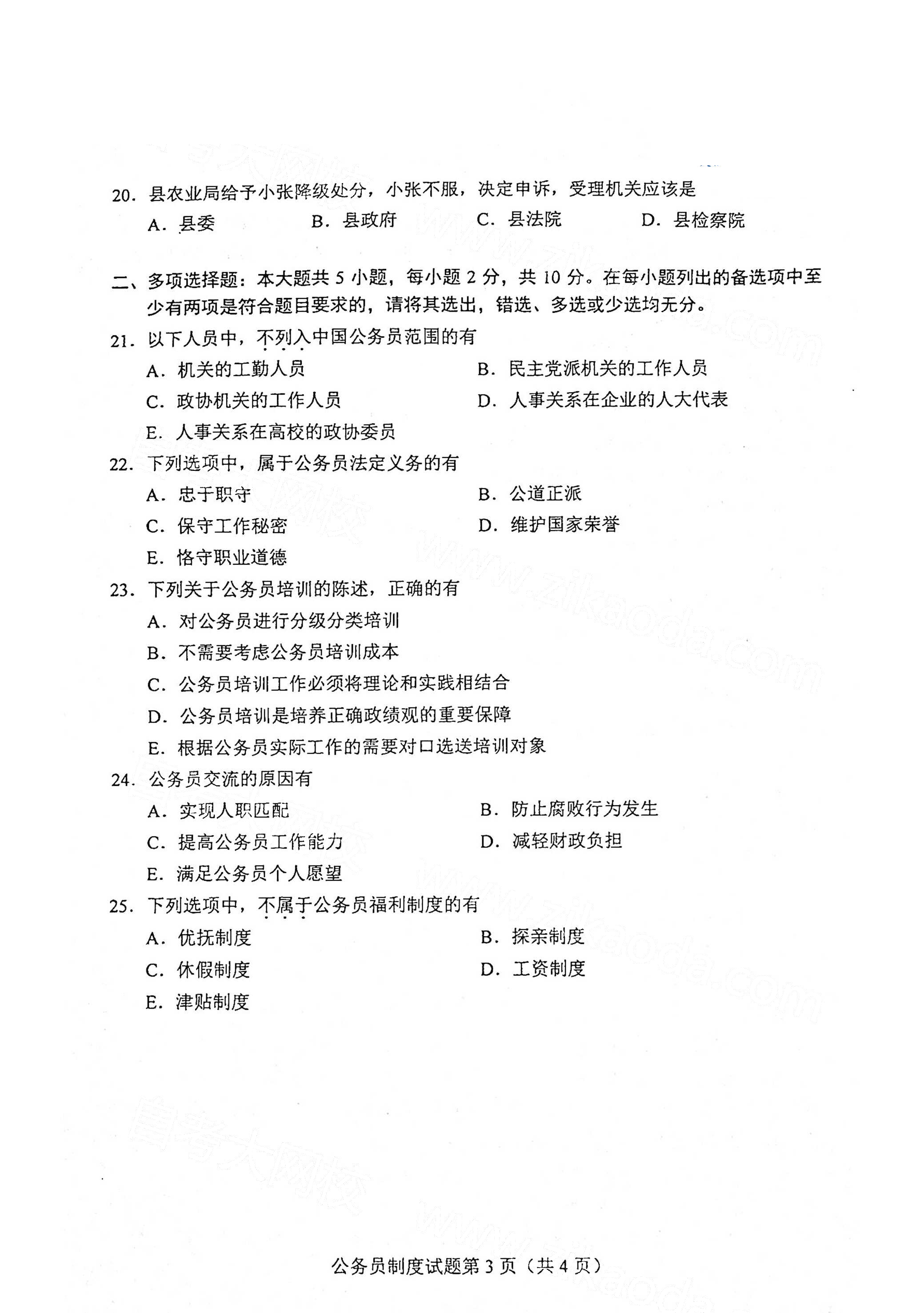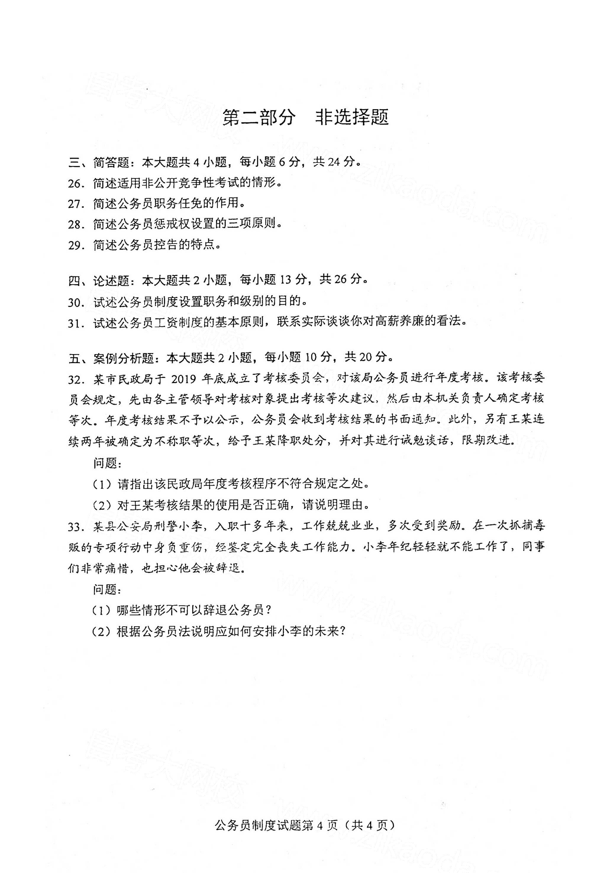 【結尾】上文就是關于2021年4月湖南自考公務員制度真題試卷內容介紹,了解更多關于湖南自考成績查詢、湖南自考報名、湖南自考專業等,敬請關注湖南自考網http://www.ovcvbjl.cn/